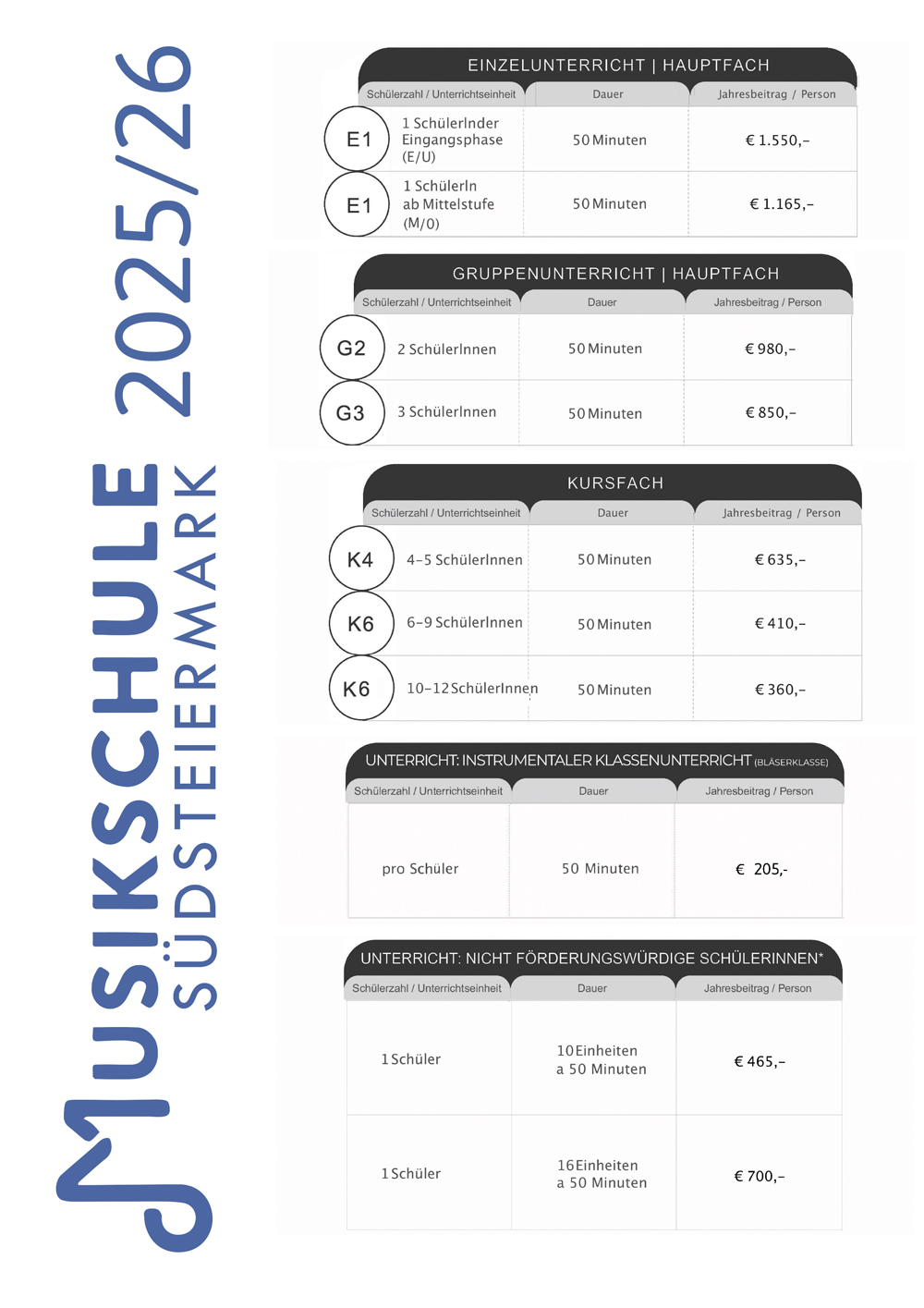 Die Musikschulbeiträge werden halbjährlich vom Schulerhalter "1. Steirische Blasmusikschule" vorgeschrieben